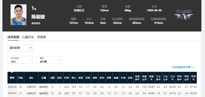 趙睿加盟北京男籃后,受戰(zhàn)術(shù)影響,陳盈駿的出場(chǎng)順序由首發(fā)變成了替補(bǔ),也就是成為了球隊(duì)替補(bǔ)陣容的核心領(lǐng)袖。24-25賽季常規(guī)賽,陳盈駿出場(chǎng)33次,僅5次替補(bǔ)身份。本賽季6場(chǎng)過(guò)后,他就已替補(bǔ)出場(chǎng)5次。
