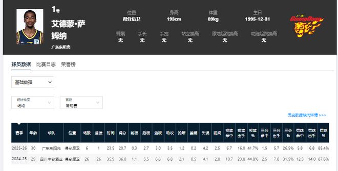 廣東男籃是CBA聯(lián)盟為數(shù)不多的以本土后場(chǎng)組合為首發(fā)的球隊(duì)。杜鋒本賽季的常規(guī)安排就是徐杰、胡明軒首發(fā),小外薩姆納第六人。本賽季6場(chǎng)過(guò)后,薩姆納僅1場(chǎng)獲得首發(fā)機(jī)會(huì)。