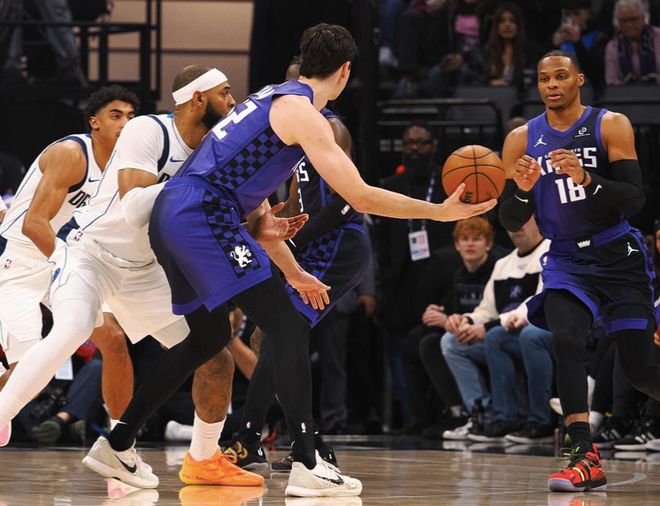 國王這次則頂住獨行俠的反撲,威少成為了取勝功臣,16中8,三分9中5,拿到21分5籃板9助攻。這一次他還達成2大里程碑,生涯總助攻數(shù)超越魔術師升至歷史第七位,還成為歷史第14位達成搶斷數(shù)2000次的球員。此外,這次埃利斯拿到賽季新高的21分,雷諾19分,施羅德10分。
