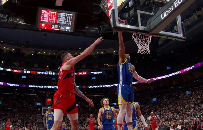 進入第四節(jié)比賽,勇士率先一波6-0攻勢,重新擴大106-96領先猛龍。穆迪隨后也三分開火,幫助勇士逐步擴大110-98領先優(yōu)勢,猛龍回敬一波13-3攻勢追到僅差2分。巴特勒中投得分,英格拉姆也中投回敬,庫里上籃與三分連得5分擴大7分優(yōu)勢。猛龍回敬一波7-0攻勢追到120-120,波杰姆斯基補籃得分,巴恩斯也補籃得分繼續(xù)追平,庫里關鍵進攻犯規(guī),英格拉姆高難度三分不中,雙方常規(guī)時間維持122-122。