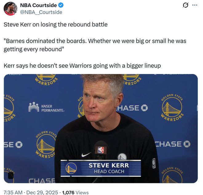 然而事實(shí)是勇士隊(duì)五小根本無法拉開空間,同時(shí)失誤不斷籃板被爆,早在末節(jié)就已經(jīng)證明過這一點(diǎn),結(jié)果輸球后科爾依舊還在嘴硬。