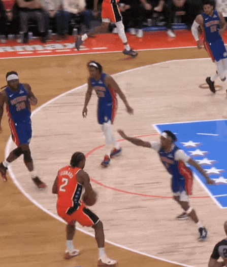 甚至第二節(jié)他和哈登單側(cè)擋拆,吸引活塞夾擊,哈登找弱側(cè)萊納德:萊納德一個三分球。
