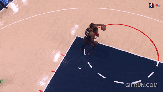 所謂禁區(qū)內(nèi)中投,就是之前對火箭也用過的,今天開場奠定基調(diào)的:碾進罰球線,強拔走你。