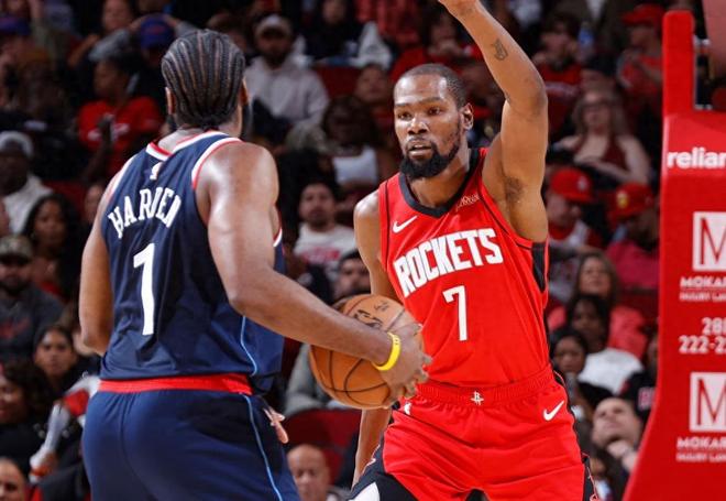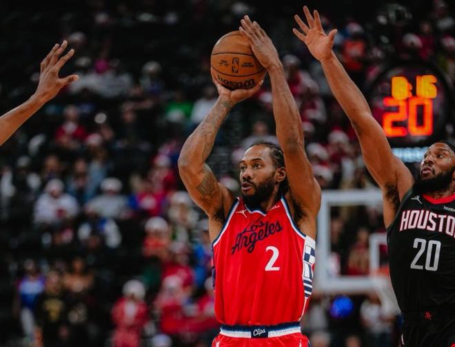 大洛與科林斯搭檔首發(fā)內(nèi)線時(shí),兩人均具備三分能力,這大大提升了快船的進(jìn)攻空間感。哈登在和大洛擋拆后內(nèi)切時(shí),對(duì)手不敢輕易收縮包夾或協(xié)防,生怕被大洛投射懲罰。這種空間優(yōu)勢(shì)讓快船的突破和傳球更加流暢,整體進(jìn)攻效率顯著提高,也讓防守積極性大幅提升。其次就是倫納德個(gè)人狀態(tài)回暖,他是快船反彈的核心驅(qū)動(dòng)力。面對(duì)火箭小卡出戰(zhàn)近37分鐘,23投16中,三分5投4中,罰球5中5,轟下賽季新高的41分外加8籃板5助攻。他的表現(xiàn)堪稱統(tǒng)治級(jí),尤其在面對(duì)火箭年輕防守悍將阿門湯普森的貼身防守時(shí),倫納德完全占據(jù)上風(fēng)。
