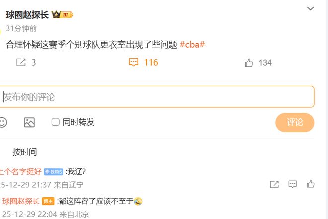 今晚CBA就2場(chǎng)比賽,趙探長(zhǎng)沒有明說(shuō)是北控,但他在下方評(píng)論區(qū)已經(jīng)排除了遼寧的嫌疑,因此具體是哪一支球隊(duì)出現(xiàn)了更衣室問(wèn)題,不言而喻了。