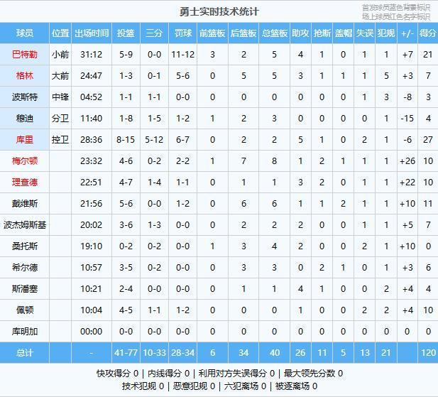 勇士:庫里27分2板5助、巴特勒21分5板4助、戴維斯11分6板1助2帽、梅爾頓10分8板1助2斷、理查德10分1板3助2斷、佩頓10分1助、格林7分5板3助、波杰姆斯基7分2板2助、希爾德6分3板2斷