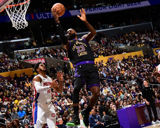 進(jìn)入末節(jié)比賽,湖人被活塞攻防壓制逐步拉開20+落后差距,湖人無奈提前換下主力認(rèn)輸,詹姆斯也是無奈被迫提前打卡下班。