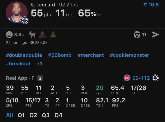 快船五連勝期間,倫納德毫無疑問是最大功臣,期間場均爆砍37.8分8.6板4.2助2.8斷神級數(shù)據(jù),攻防兩端都展現(xiàn)出了極其強悍的統(tǒng)治力,可謂是神擋殺神佛擋殺佛,現(xiàn)在對手光是碰見他就尿不濕都濕了。