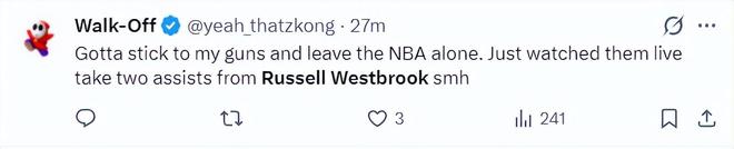 末節(jié)威少不在場時國王打出一波12-0縮小分差,申京再度拉開到5分后威少登場中投命中,威少13.3秒絕平三分命中,杜蘭特三分絕殺不中進入加時賽。