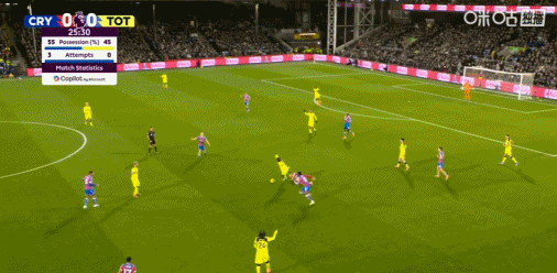 第42分鐘,里沙利松頭球擺渡,格雷頭球接力破門,熱刺1-0水晶宮