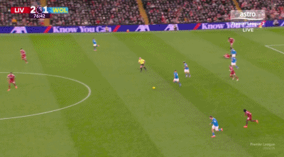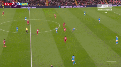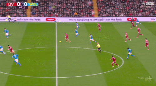 本場狼隊的運(yùn)動戰(zhàn)進(jìn)攻,打長傳球利物浦并沒吃虧,恰恰是在下三路地面球,特別是在狼隊突破了利物浦前場逼搶的第一線之后,利物浦中路,后腰位置的防守留給對方太多空間。