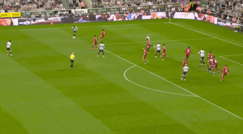 2、對紐卡第一個(gè)丟球,對方角球開出后利物浦解圍出來,紐卡再次傳中,直接頭球破門。