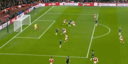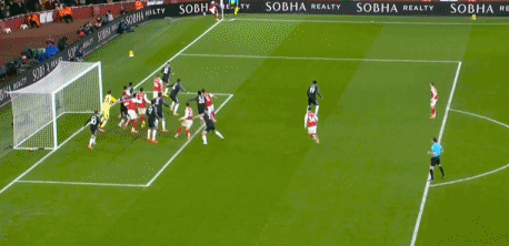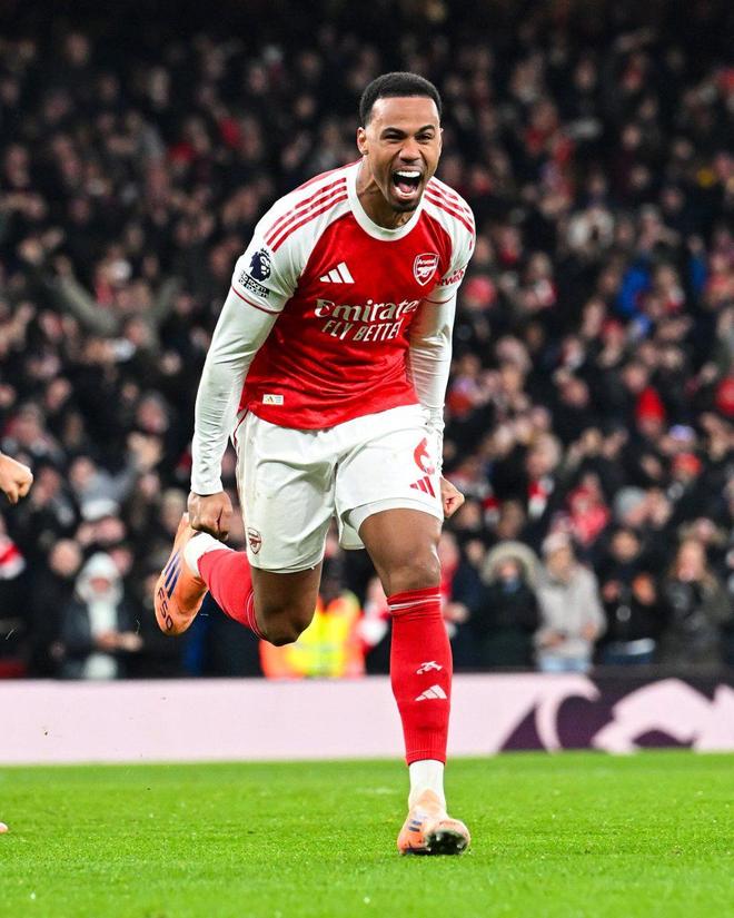 第48分鐘,薩卡角球傳中,加布里埃爾近距離頭球破門,裁判VAR確認(rèn)有效,1-0!