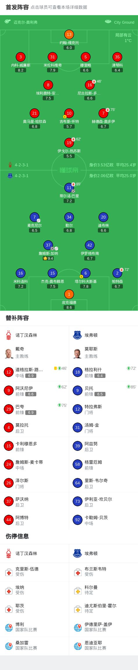 北京時(shí)間12月31日,英格蘭足球超級(jí)聯(lián)賽第19輪,諾丁漢森林主場(chǎng)迎戰(zhàn)埃弗頓。上半場(chǎng),麥克尼爾助攻加納推射破門(mén);下半場(chǎng),加納精準(zhǔn)斜塞助攻巴里推射得手。全場(chǎng)比賽結(jié)束,最終諾丁漢森林0-2不敵埃弗頓。