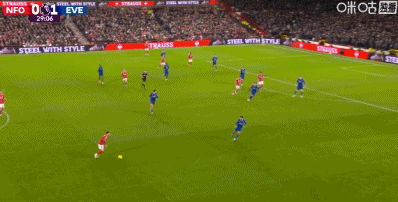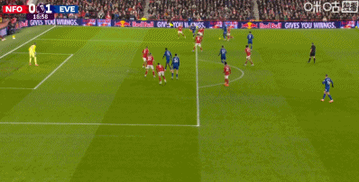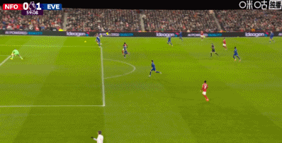 第19分鐘,麥克尼爾送出直塞,加納推射破門(mén)!諾丁漢森林0-1埃弗頓