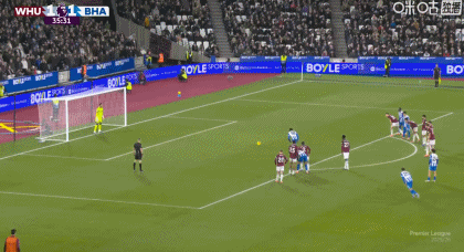 半場:西漢姆聯(lián)2-1布萊頓,帕奎塔傳射+送點,維爾貝克點球二中一