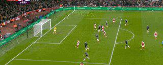 78’阿森納從本方底線處發(fā)動快攻,蘇維門迪中場控下二分之一球后做球,特羅薩爾橫傳,熱蘇斯在禁區(qū)邊緣兜射建功,替補上場后第一次觸球即破門得分,阿森納4比0。